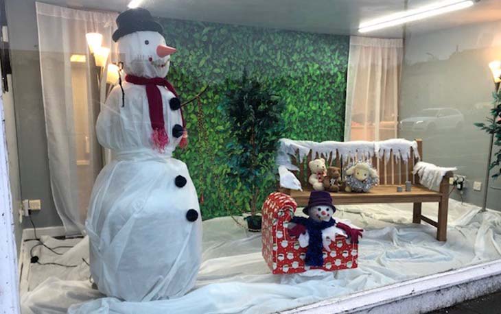 Edwin Pounds & Sons Funeral Directors in Sandbeds took part in the Riddlesden Snowman trail this year. Here the snowmen are gracing the Keighley branch window before it was time to move them into place.